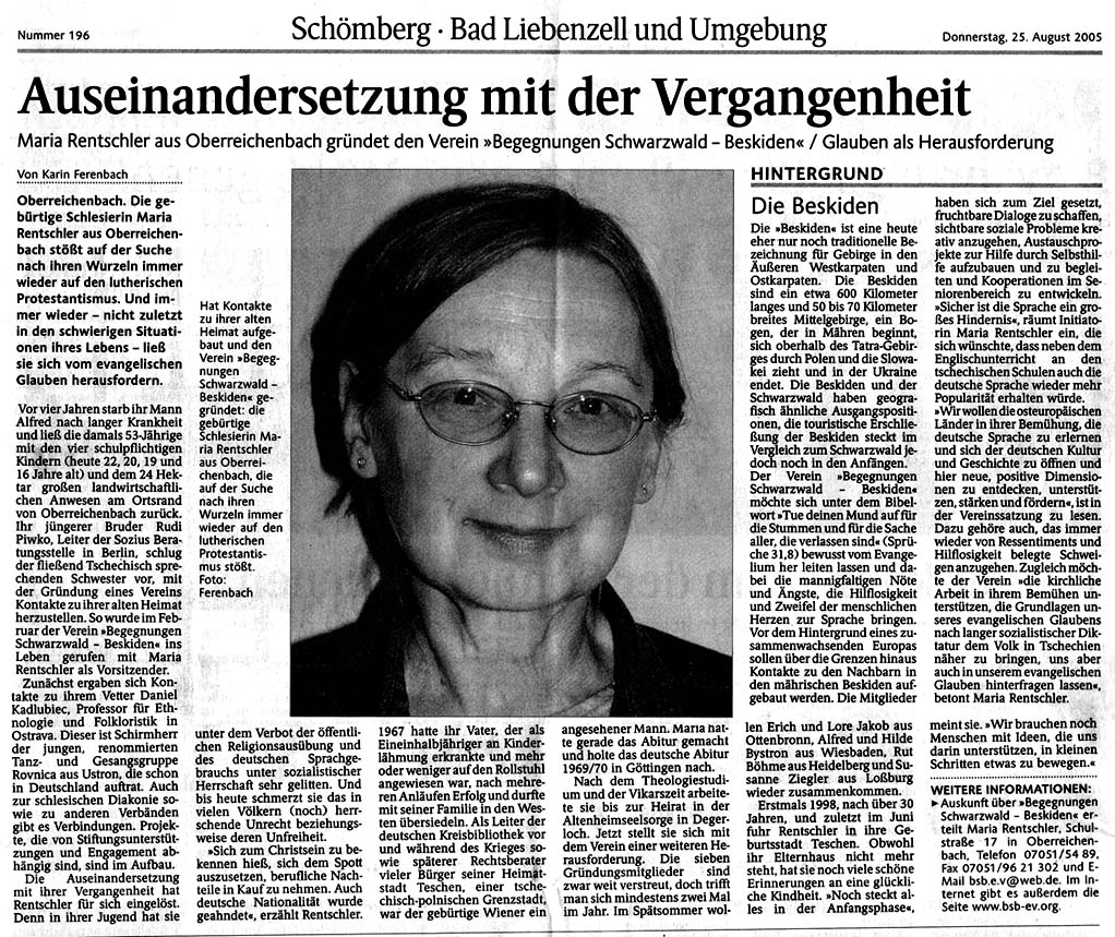 Die Initiatorin dieses Vereins, Frau Maria Rentschler, ist in Schlesien geboren.